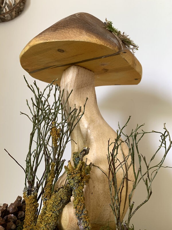 Unikatowa dekoracja w klimacie leśnym z grzybem o wysokości ok 45 cm (wraz z podstawą)