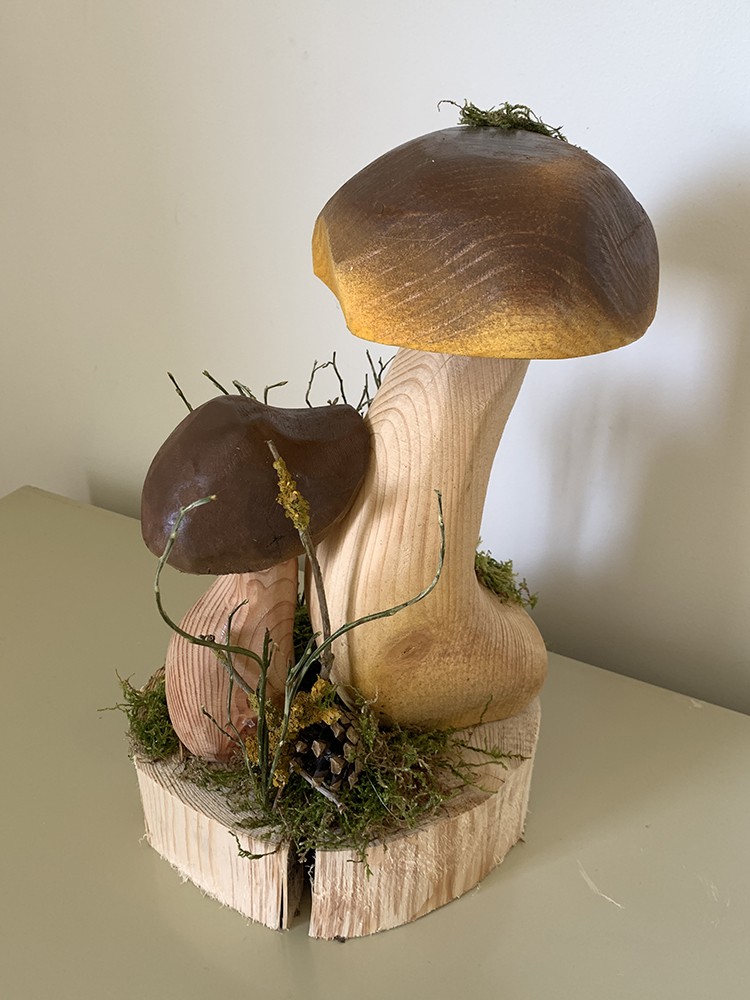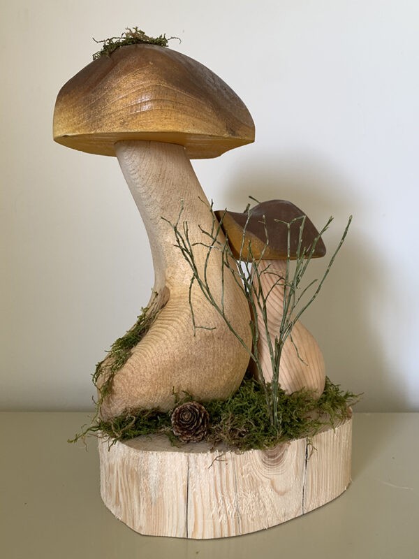 Unikatowa dekoracja w klimacie leśnym z grzybkami o wysokości ok 35 cm (wraz z podstawą)