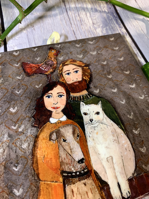 Obraz ceramiczny w postaci kafelka,  przedstawia grafikę polskiej artystki, której prace charakteryzują się prostotą formy z brakiem zastosowania perspektywy. Jest to idealne połączenie dla baśniowych i ludowych motywów, które wypełniają obrazy artystki, a także dla licznie występujących elementów związanych z wiejskimi krajobrazami.