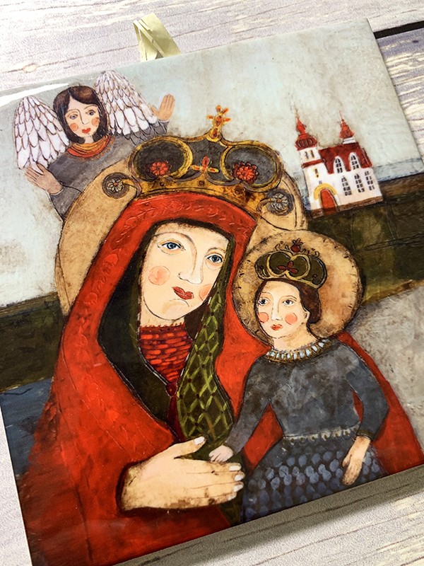 Kafelek ceramiczny w postaci obrazka – Matka Boska w koronie 15×15 cm