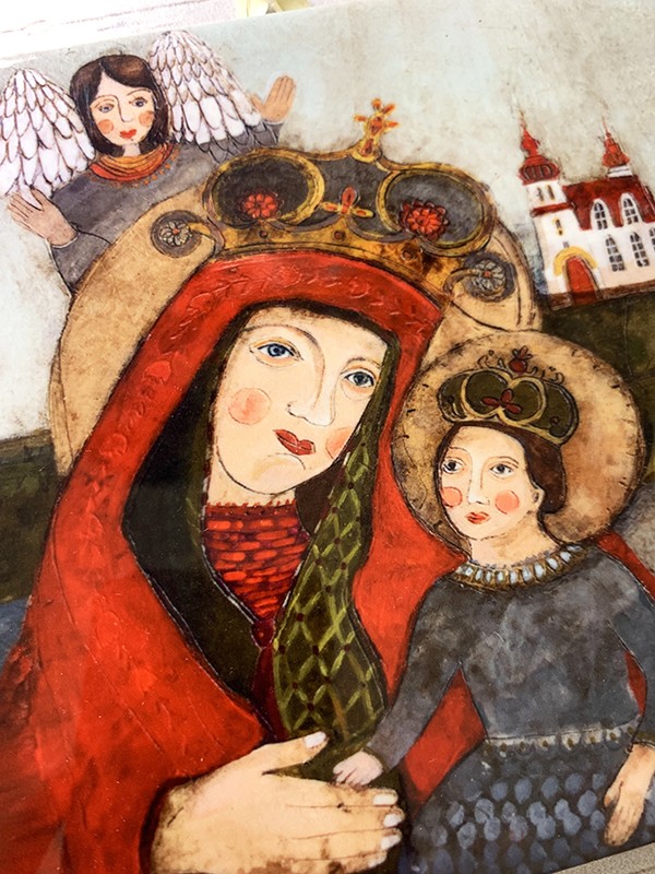 Obraz ceramiczny w postaci kafelka, przedstawia grafikę polskiej artystki, której prace charakteryzują się prostotą formy z brakiem zastosowania perspektywy. Jest to idealne połączenie dla baśniowych i ludowych motywów, które wypełniają obrazy artystki, a także dla licznie występujących elementów związanych z wiejskimi krajobrazami.