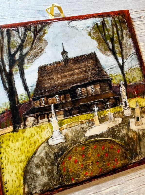Kafelek ceramiczny w postaci obrazka – Stary kościółek 15×15 cm