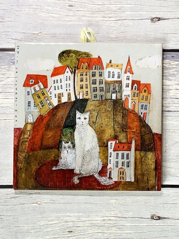 Kafelek ceramiczny w postaci obrazka - pies i kot 15x15 cm