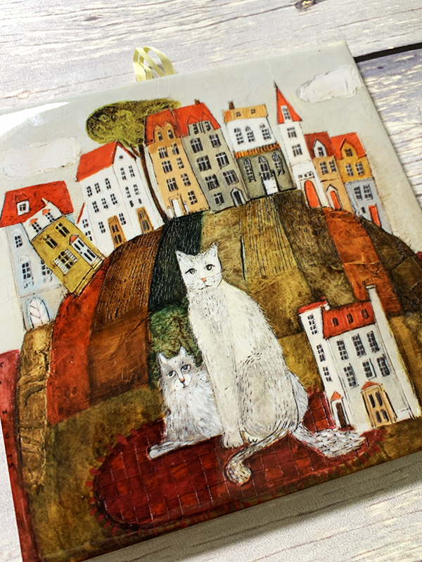 Kafelek ceramiczny w postaci obrazka – Wiejskie koty II 15×15 cm