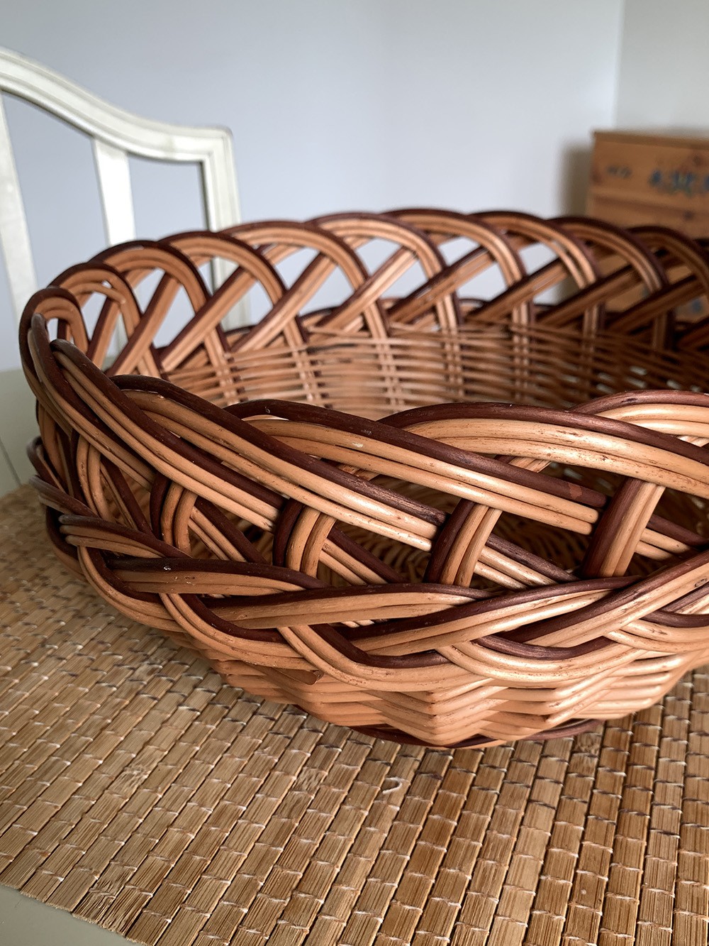 Klasyczna ażurowa tacka z plecionką ręcznie wyplatana z wysokiej jakości wikliny naturalnej.