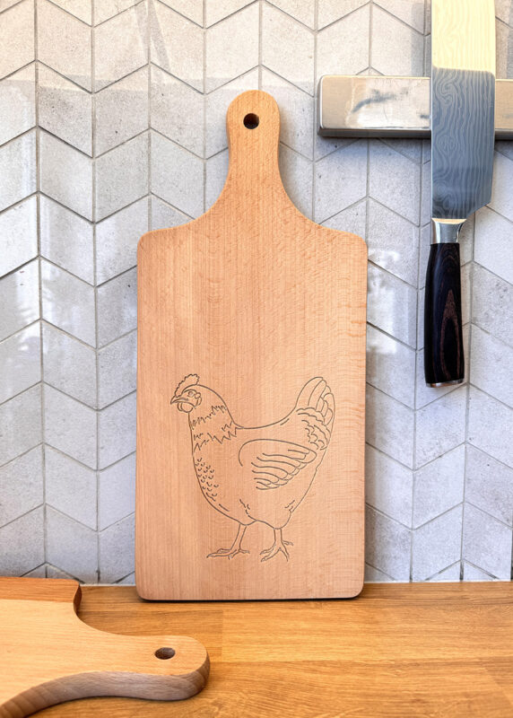 Deska inspirowana tradycyjnym motywem wiejskim i naturą. Wykonana z naturalnego drewna bukowego, ręcznie olejowana. Idealna na prezent oraz do codziennego użytku.