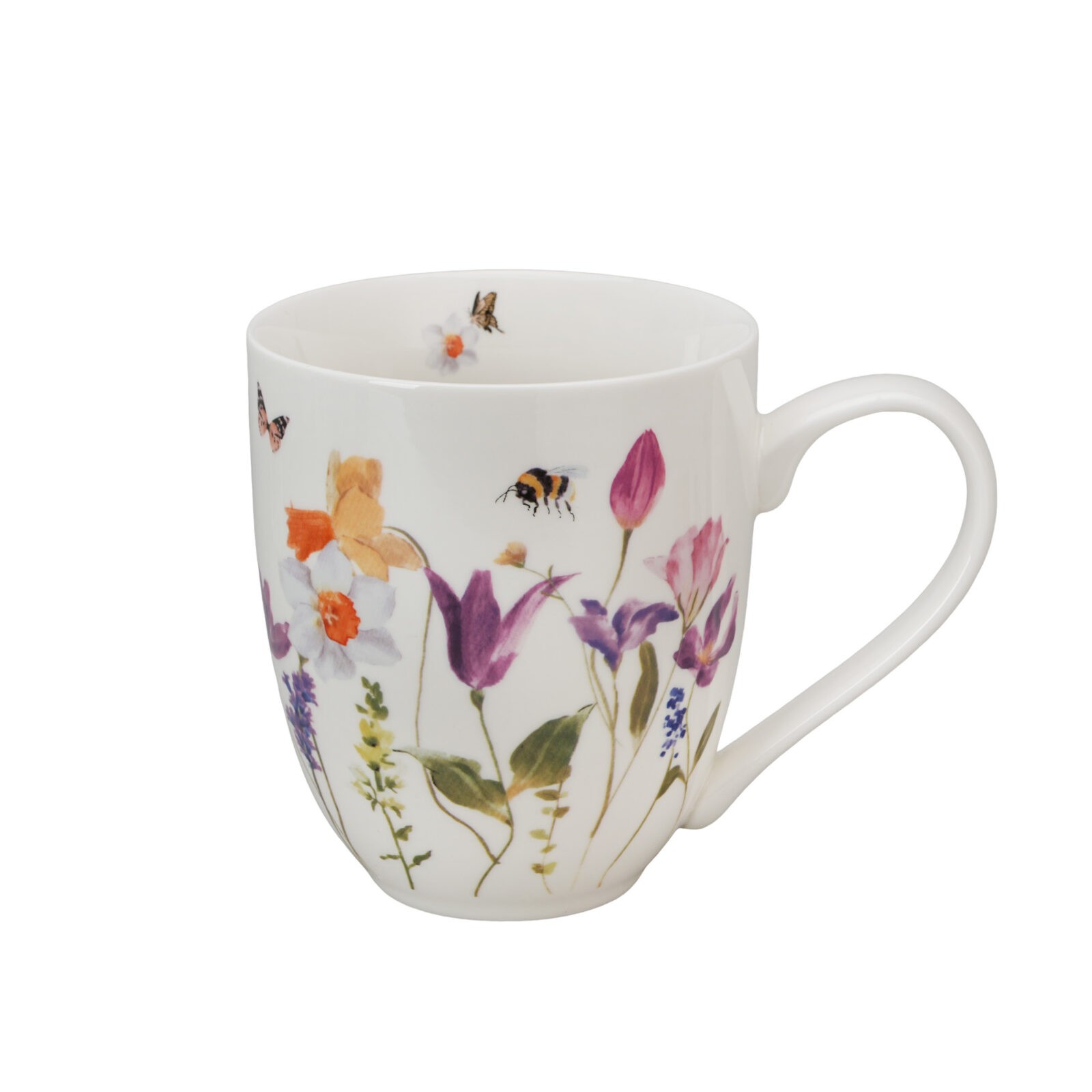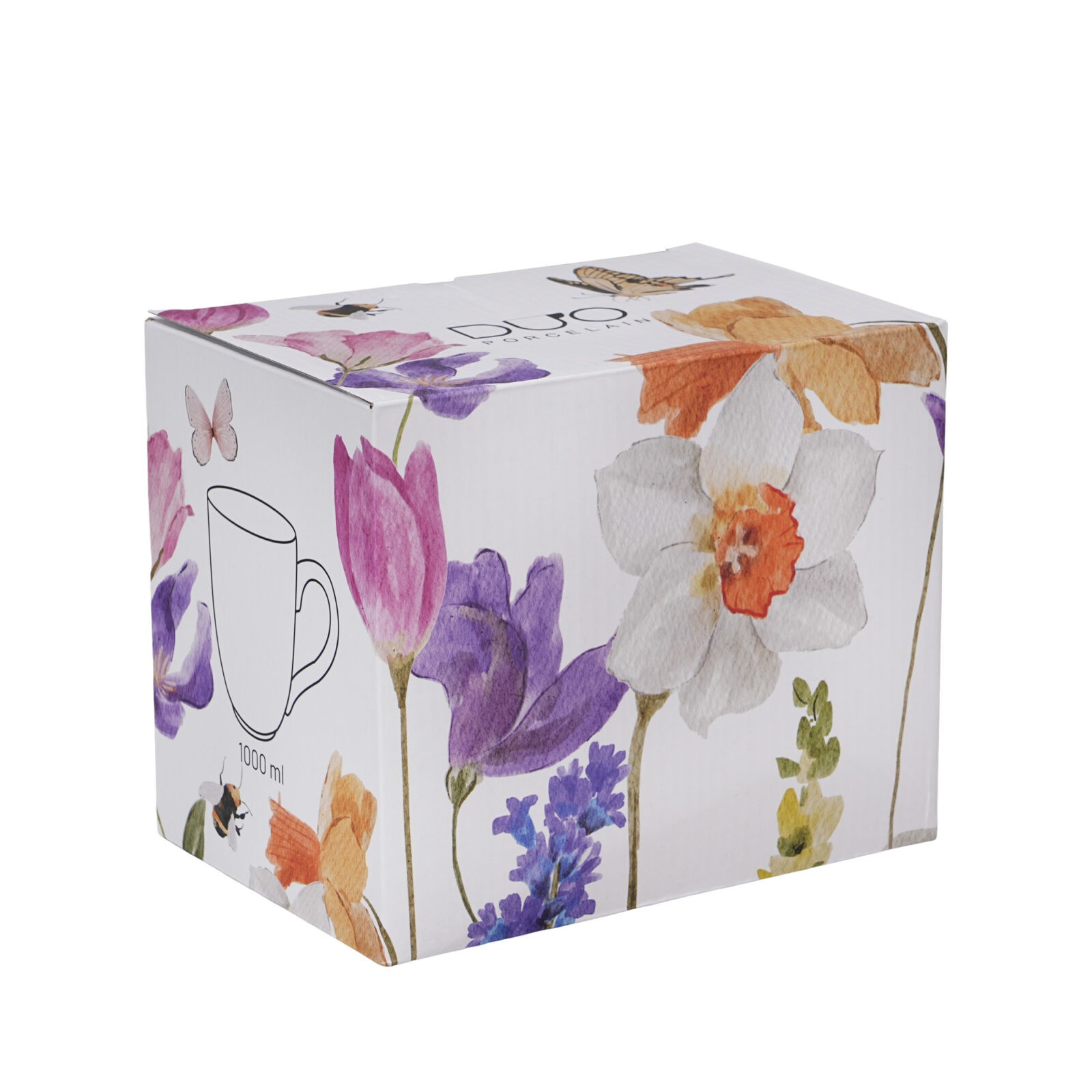 Duży i wygodny kubek o pojemności 1 litra. Wykonany z porcelany New Bone China o elegancko kremowo-białawej barwie, z kwiecistym motywem wiosennych kwiatów.