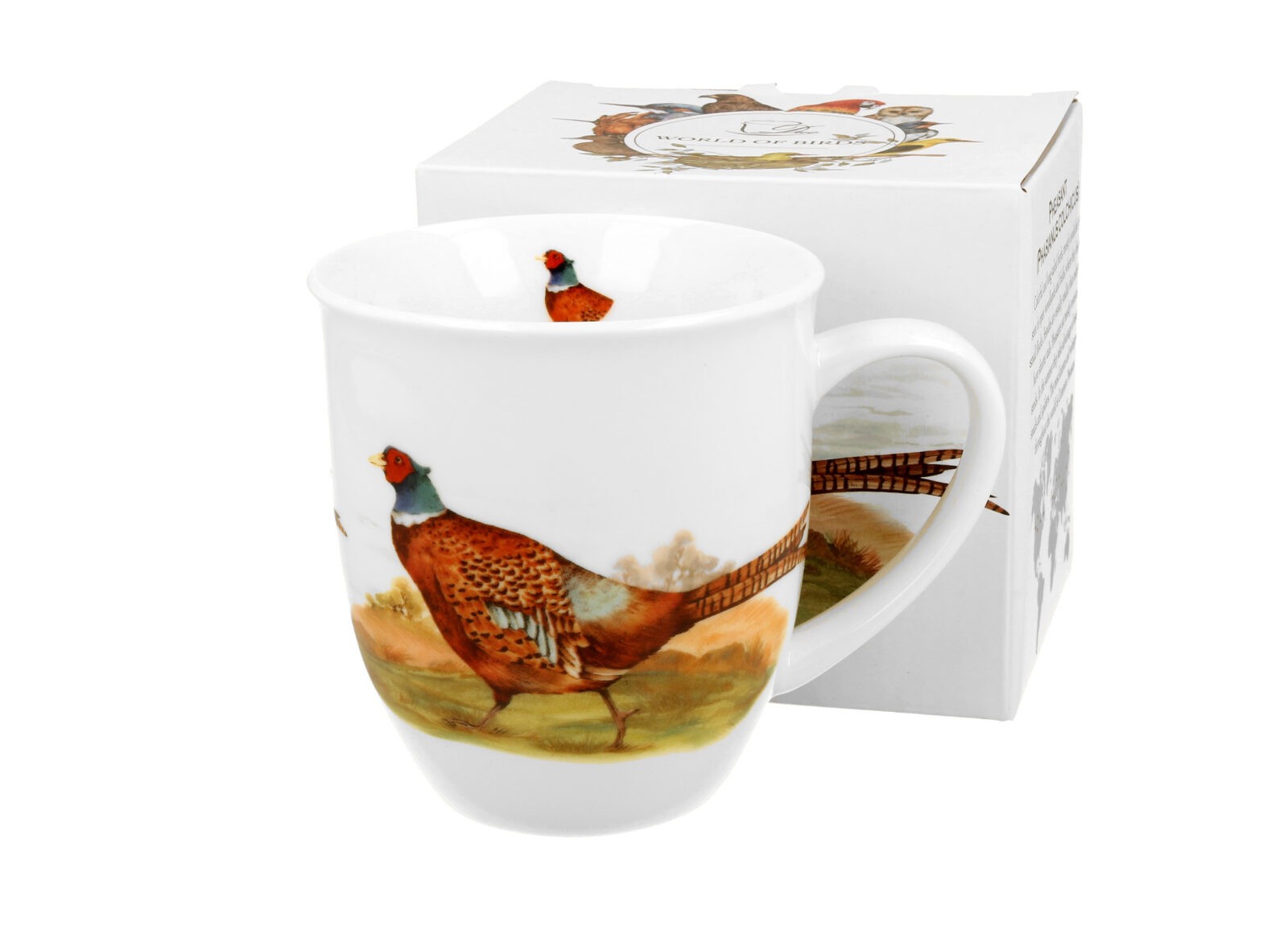 Kubek o pojemności 400 ml z bażantem. Wykonany z porcelany New Bone China o elegancko kremowo-białawej brawie.