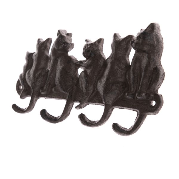 Piękny i solidny żeliwny wieszak z kotami. Niebanalna ozdoba do domu, ogrodu, altany.